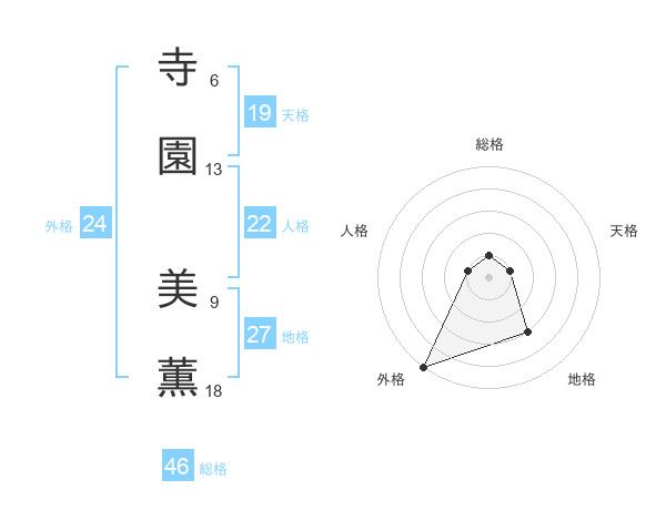 寺園 美薫さんの外格は24画の5点!