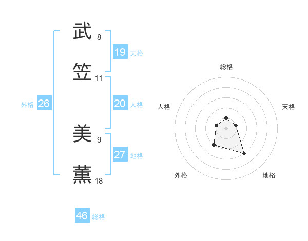 武笠 美薫さんを姓名の画数から五運を鑑定