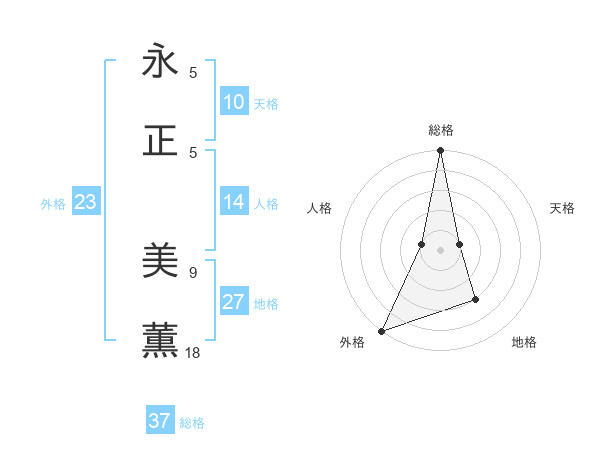 永正 美薫さんの総格は37画の5点!