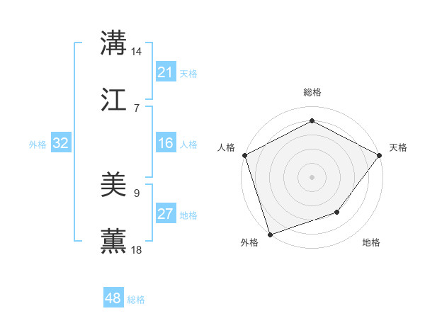 溝江 美薫さんの天格は21画の5点!