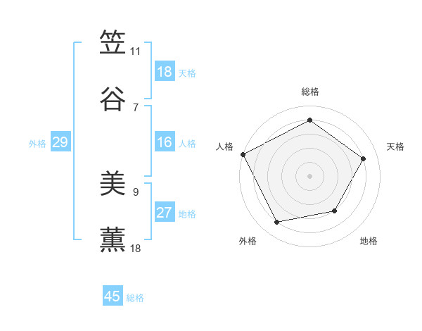 笠谷 美薫さんを姓名の画数から五運を鑑定