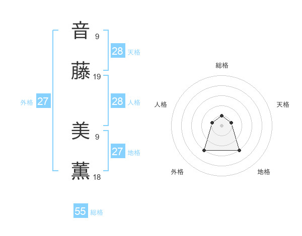 音藤 美薫さんを姓名の画数から五運を鑑定