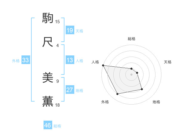 駒尺 美薫さんの天格は19画の1点!
