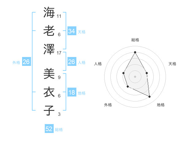 海老澤 美衣子さんを姓名の画数から五運を鑑定