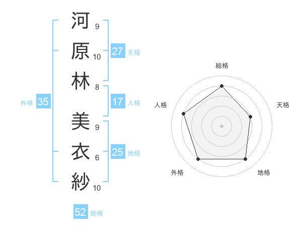 河原林 美衣紗さんを姓名の画数から五運を鑑定