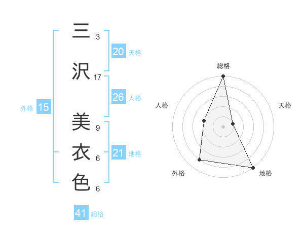 三沢 美衣色さんの総格は41画の5点!