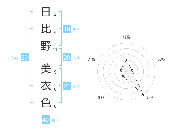 日比野 美衣色さんを姓名の画数から五運を鑑定