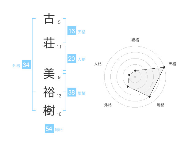 古荘 美裕樹さんを姓名の画数から五運を鑑定