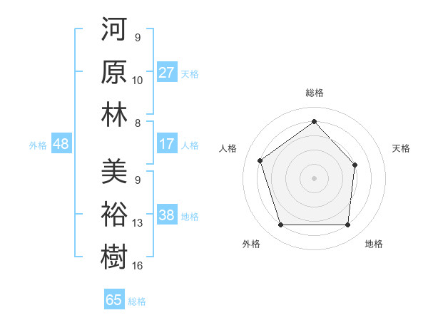 河原林 美裕樹さんを姓名の画数から五運を鑑定