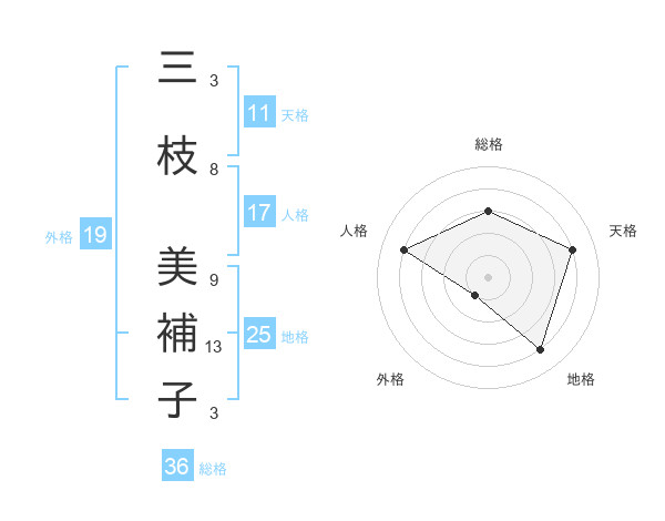 三枝 美補子さんを姓名の画数から五運を鑑定