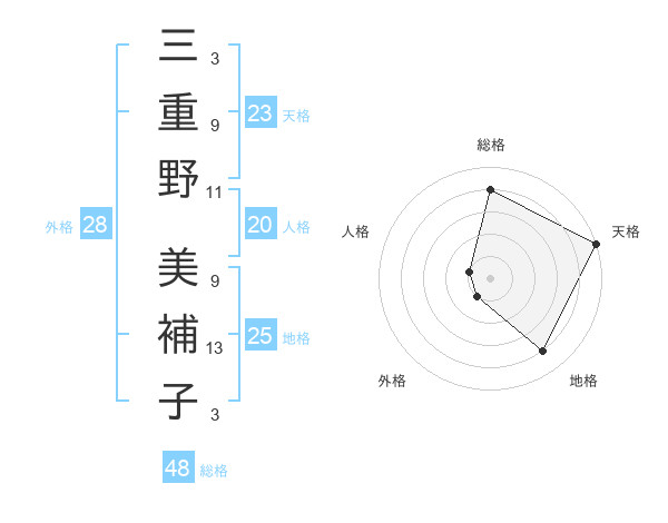 三重野 美補子さんを姓名の画数から五運を鑑定