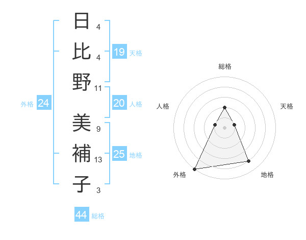 日比野 美補子さんを姓名の画数から五運を鑑定