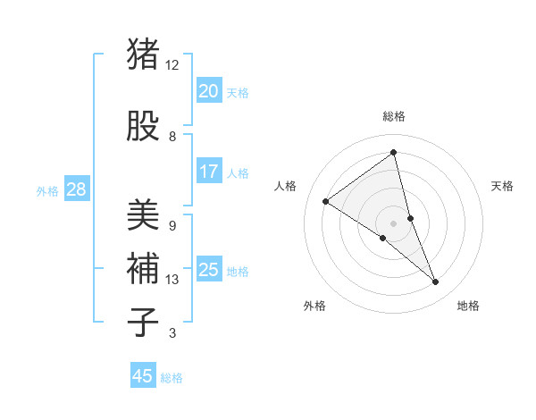 猪股 美補子さんの総格は45画の4点!