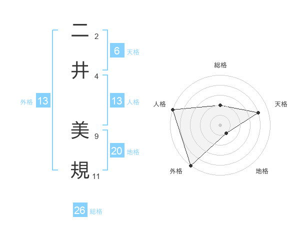 二井 美規さんの総格は26画の2点!