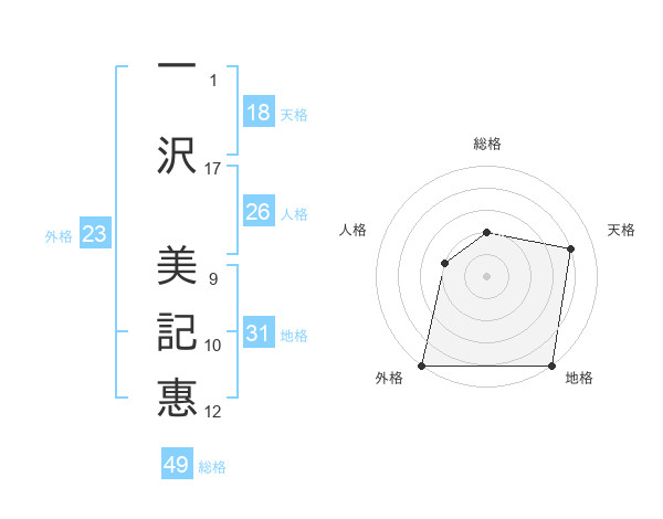 一沢 美記惠さんを姓名の画数から五運を鑑定