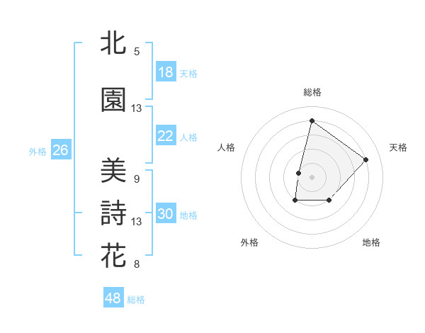 北園 美詩花さんを姓名の画数から五運を鑑定
