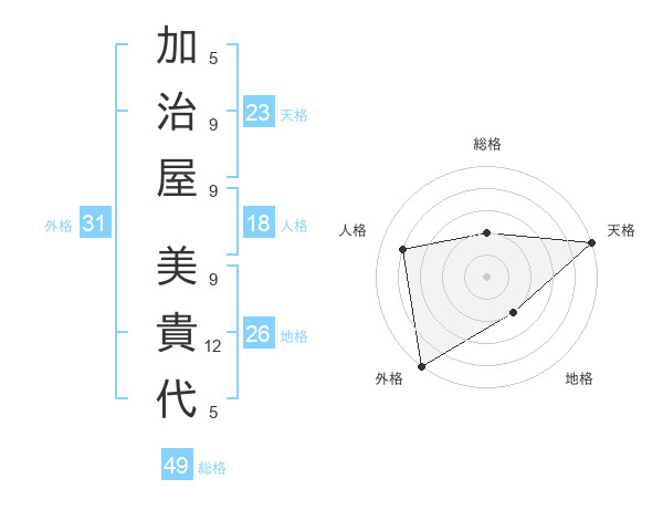 加治屋 美貴代さんを姓名の画数から五運を鑑定