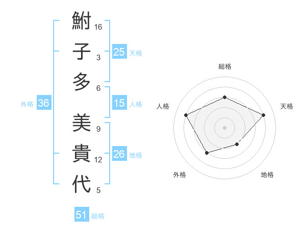 鮒子多 美貴代さんの総格は51画の3点!