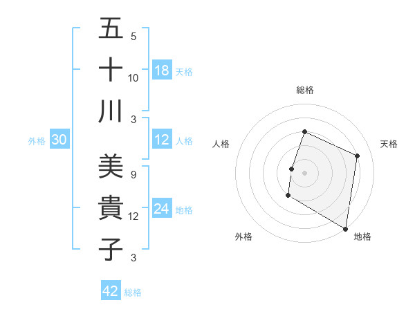 五十川 美貴子さんの総格は42画の3点!