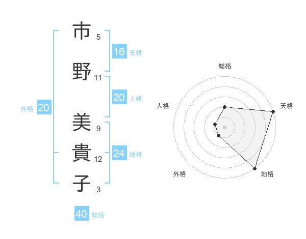 市野 美貴子さんを姓名の画数から五運を鑑定