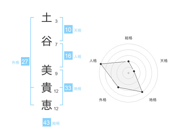 土谷 美貴恵さんを姓名の画数から五運を鑑定
