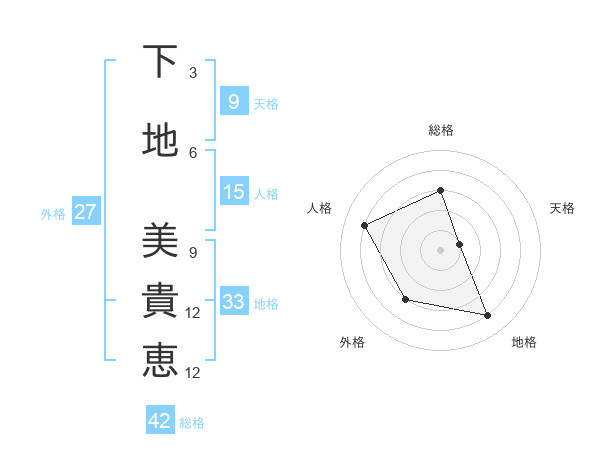 下地 美貴恵さんを姓名の画数から五運を鑑定