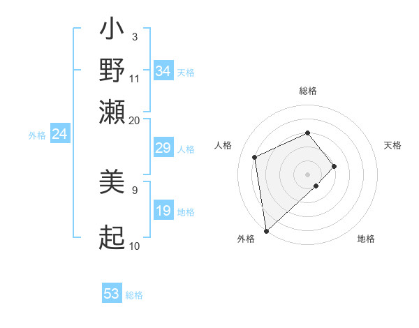 小野瀬 美起さんを姓名の画数から五運を鑑定
