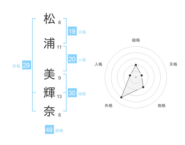 松浦 美輝奈さんを姓名の画数から五運を鑑定