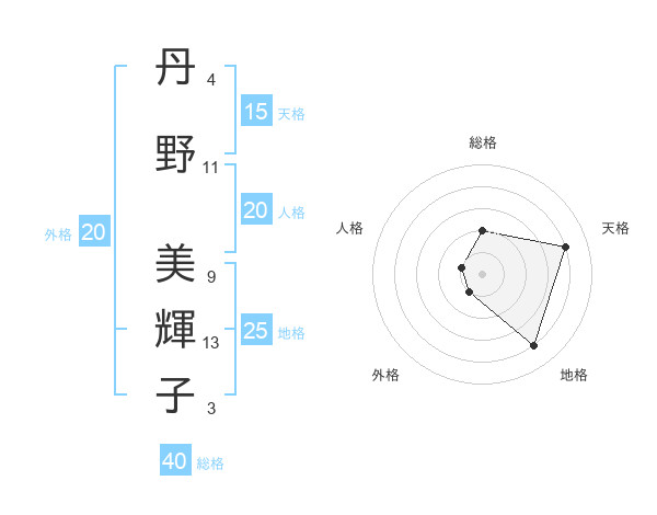 丹野 美輝子さんの天格は15画の4点!