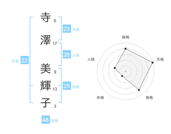 寺澤 美輝子さんを姓名の画数から五運を鑑定
