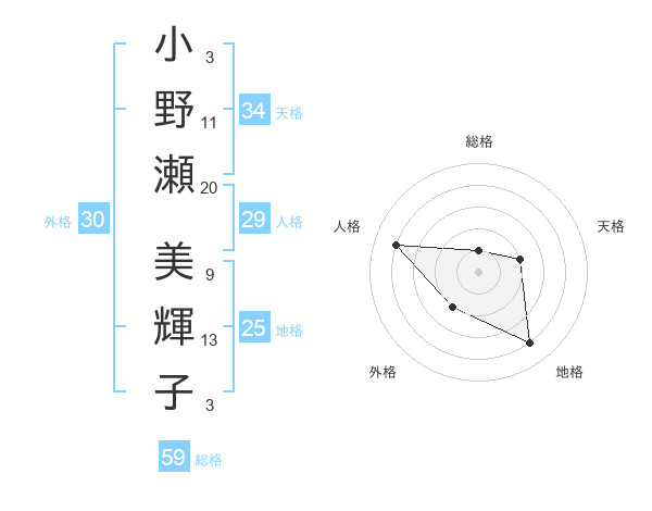 小野瀬 美輝子さんを姓名の画数から五運を鑑定
