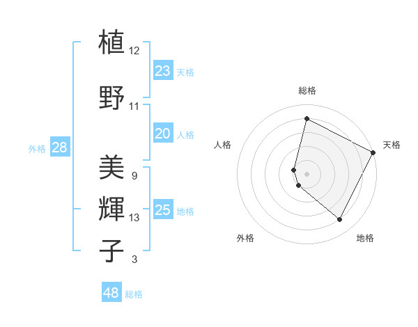 植野 美輝子さんを姓名の画数から五運を鑑定