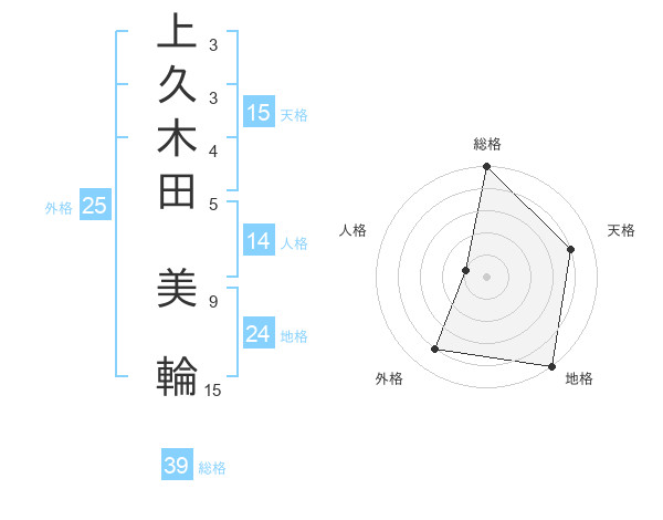 上久木田 美輪さんの総格は39画の5点!