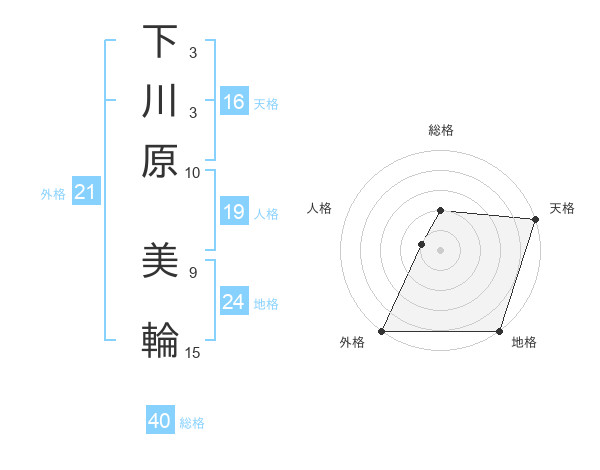 下川原 美輪さんを姓名の画数から五運を鑑定