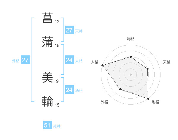 菖蒲 美輪さんの総格は51画の3点!