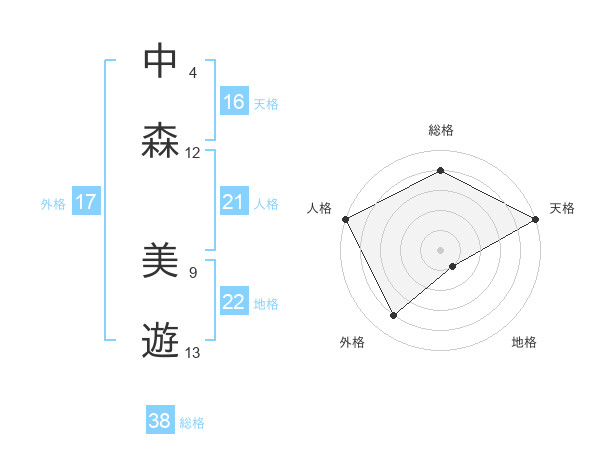 中森 美遊さんの総格は38画の4点