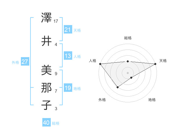 澤井 美那子さんを姓名の画数から五運を鑑定