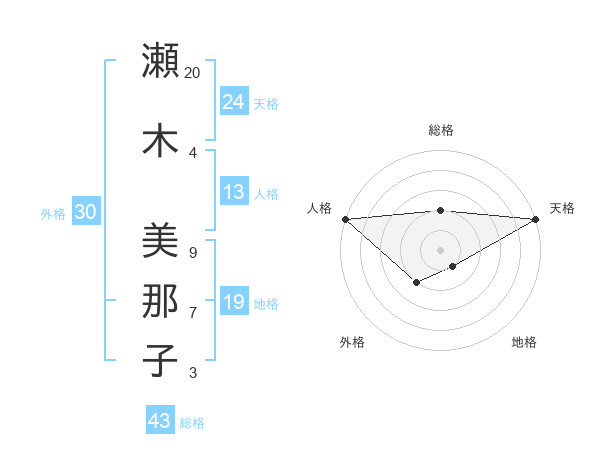 瀬木 美那子さんを姓名の画数から五運を鑑定