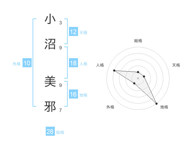 小沼 美邪さんを姓名の画数から五運を鑑定