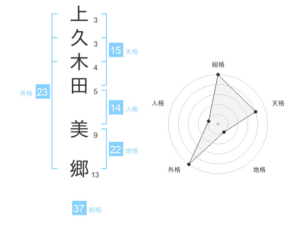 上久木田 美郷さんを姓名の画数から五運を鑑定