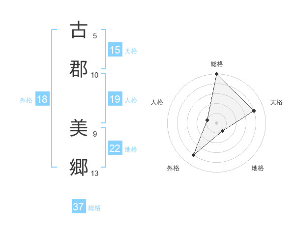 古郡 美郷さんを姓名の画数から五運を鑑定
