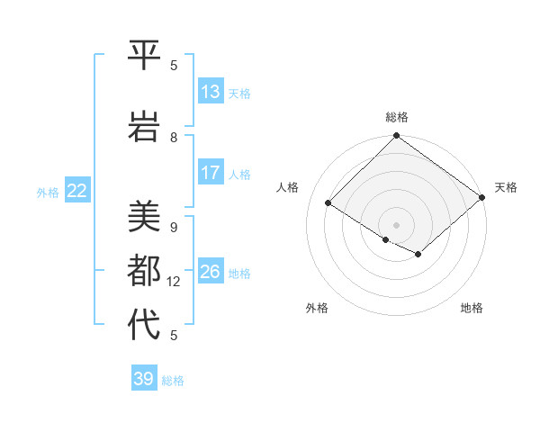 平岩 美都代さんの総格は39画の5点!