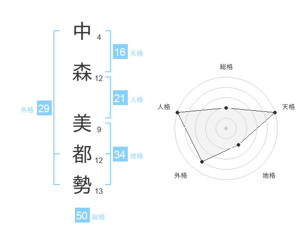 中森 美都勢さんを姓名の画数から五運を鑑定