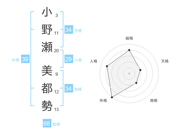 小野瀬 美都勢さんを姓名の画数から五運を鑑定