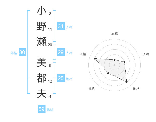 小野瀬 美都夫さんを姓名の画数から五運を鑑定