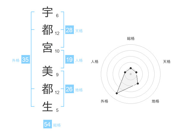 宇都宮 美都生さんを姓名の画数から五運を鑑定