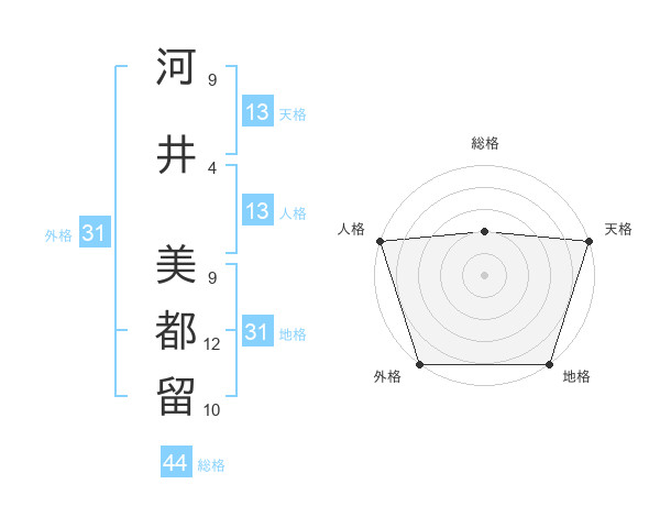 河井 美都留さんの外格は31画の5点!