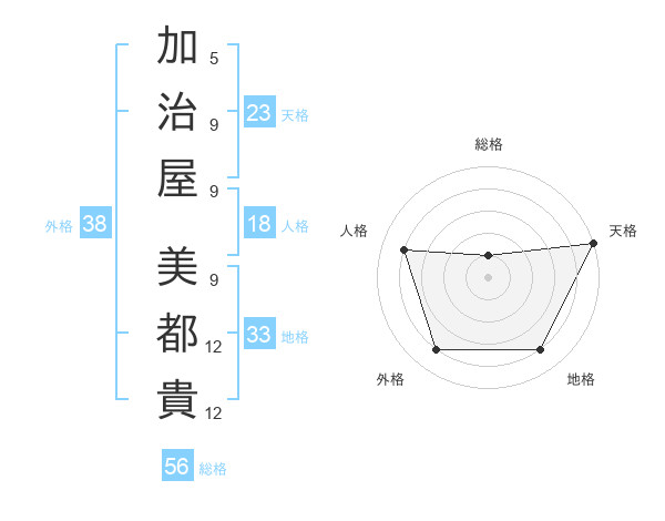加治屋 美都貴さんの天格は23画の5点