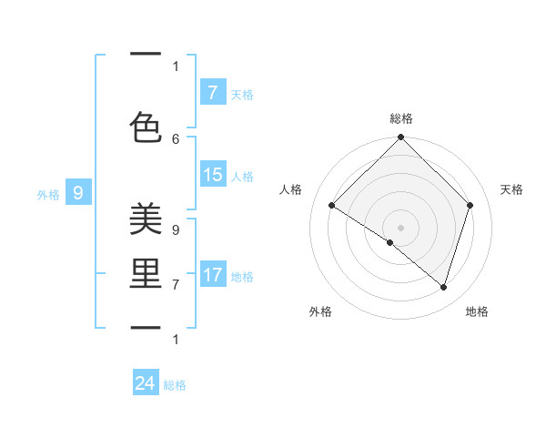 一色 美里ーさんの総格は24画の5点!