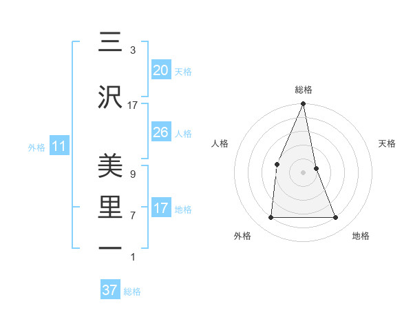 三沢 美里ーさんを姓名の画数から五運を鑑定